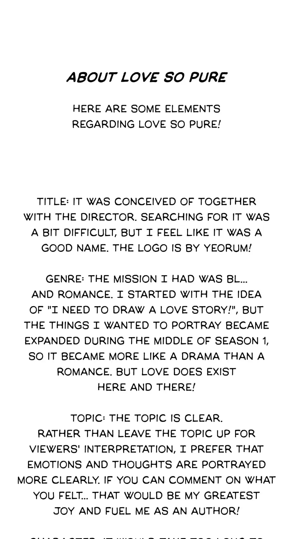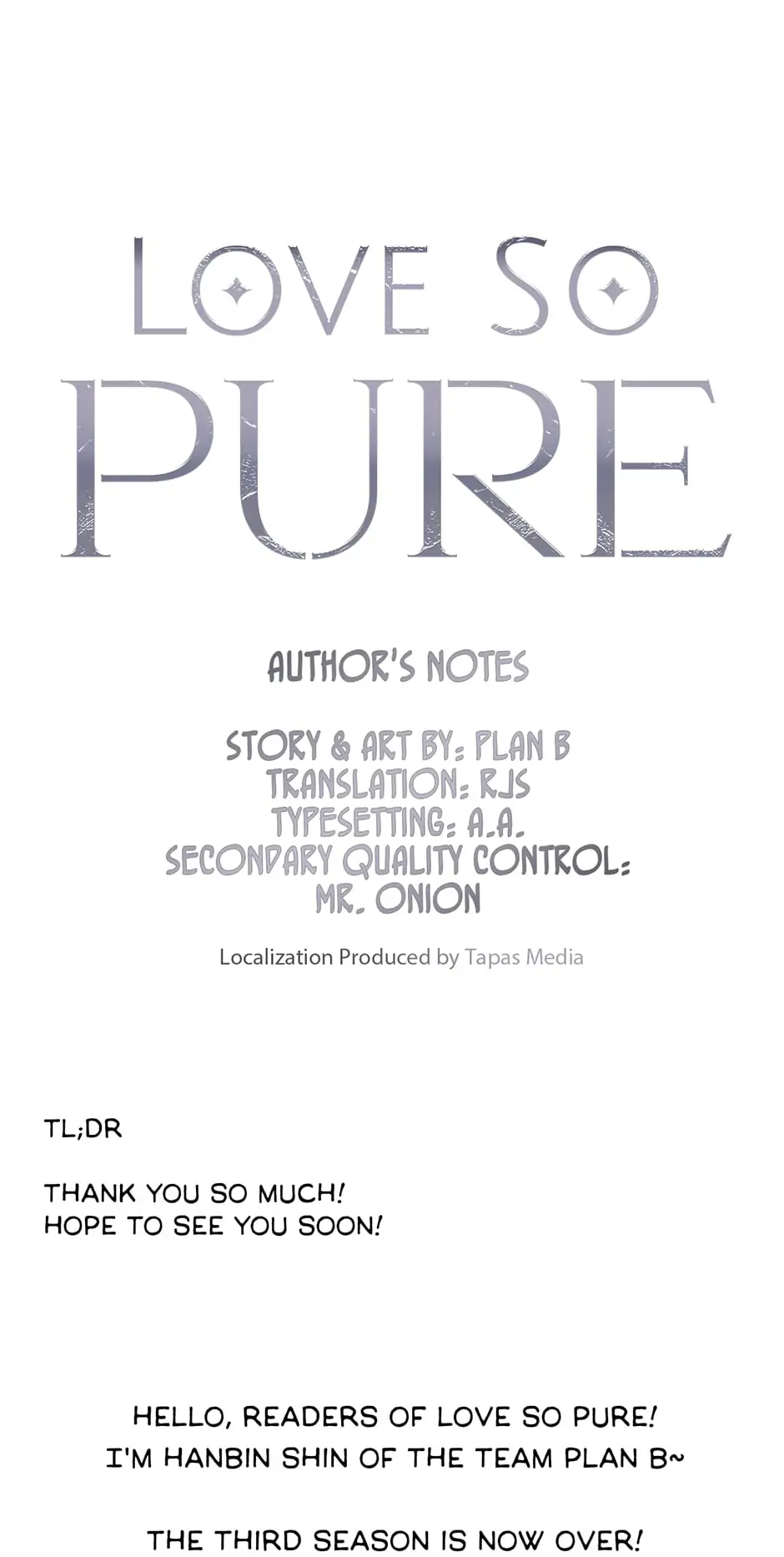 Highest Order (Love So Pure) - Chapter 114 Author's Note