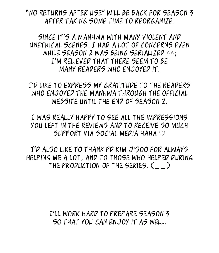 No Returns After Use - Season 2 Afterword