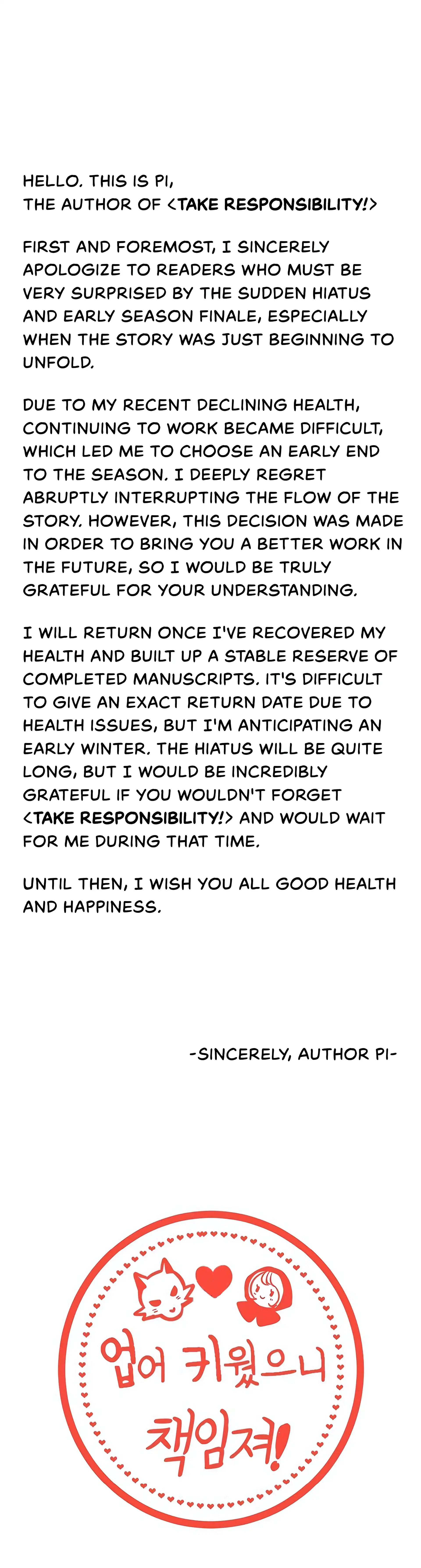 Take Responsibility [DeliriousCat] - Hiatus and End Season